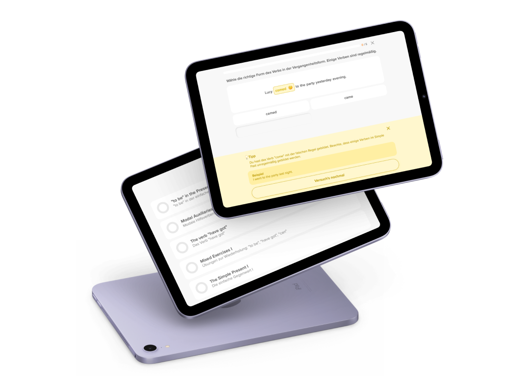 Error pattern recognition through computational linguistics:In cooperation with the phase-6 editorial team, various highly specific grammatical error types have been defined. Thanks to computational linguistics methods, these can be precisely identified in the grammar tutor.